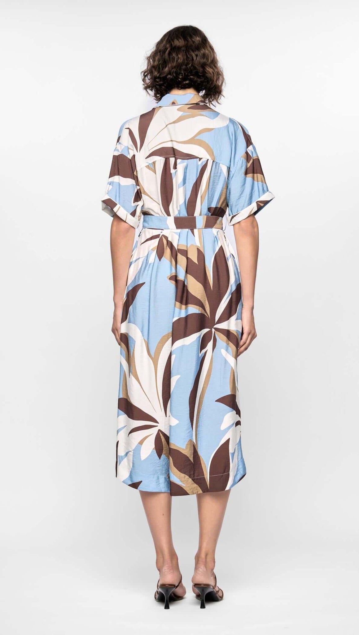 Effortlessly elevated, the Maeve Midi Shirt Dress is made for sun-drenched days and laid-back moments. Featuring an all-over abstract print in calming tones, it's designed with a relaxed button-up silhouette, adjustable D-ring waist tie and cuffed sleeves for a polished finish.