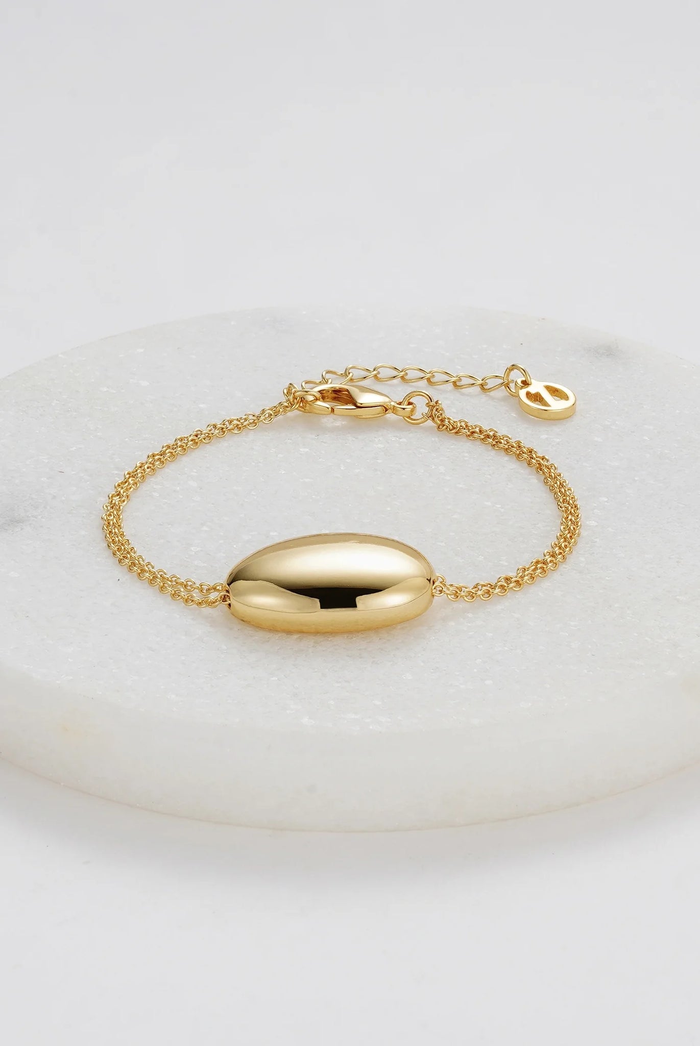 Featuring a bold bean-shaped charm, the Paisley Bracelet is a modern statement piece with a soft, organic silhouette. Designed to stand out on its own or layer beautifully with your everyday stack.