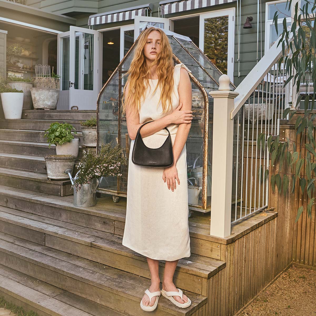 A mystical and romantic encounter. 'Aurora' with her dressier, more structured form fits perfectly under your shoulder, making her the perfect wingwoman for chance meetings of the night.