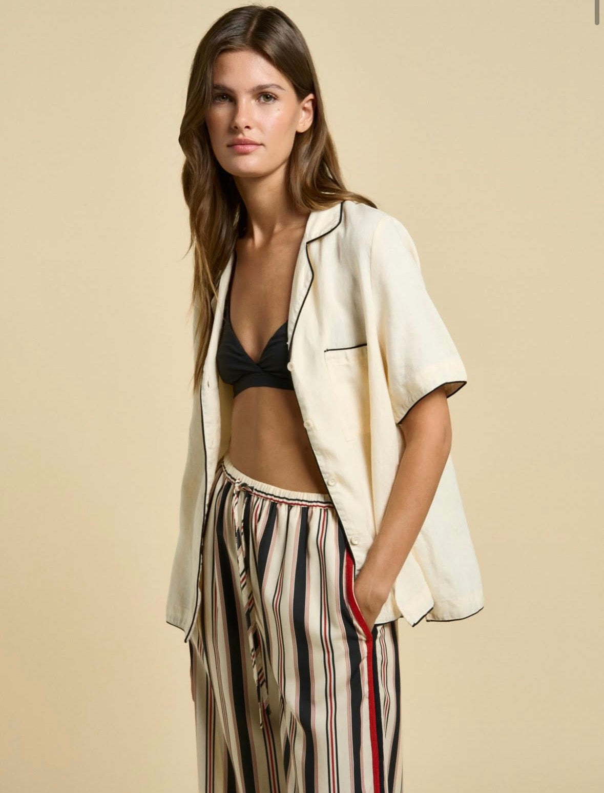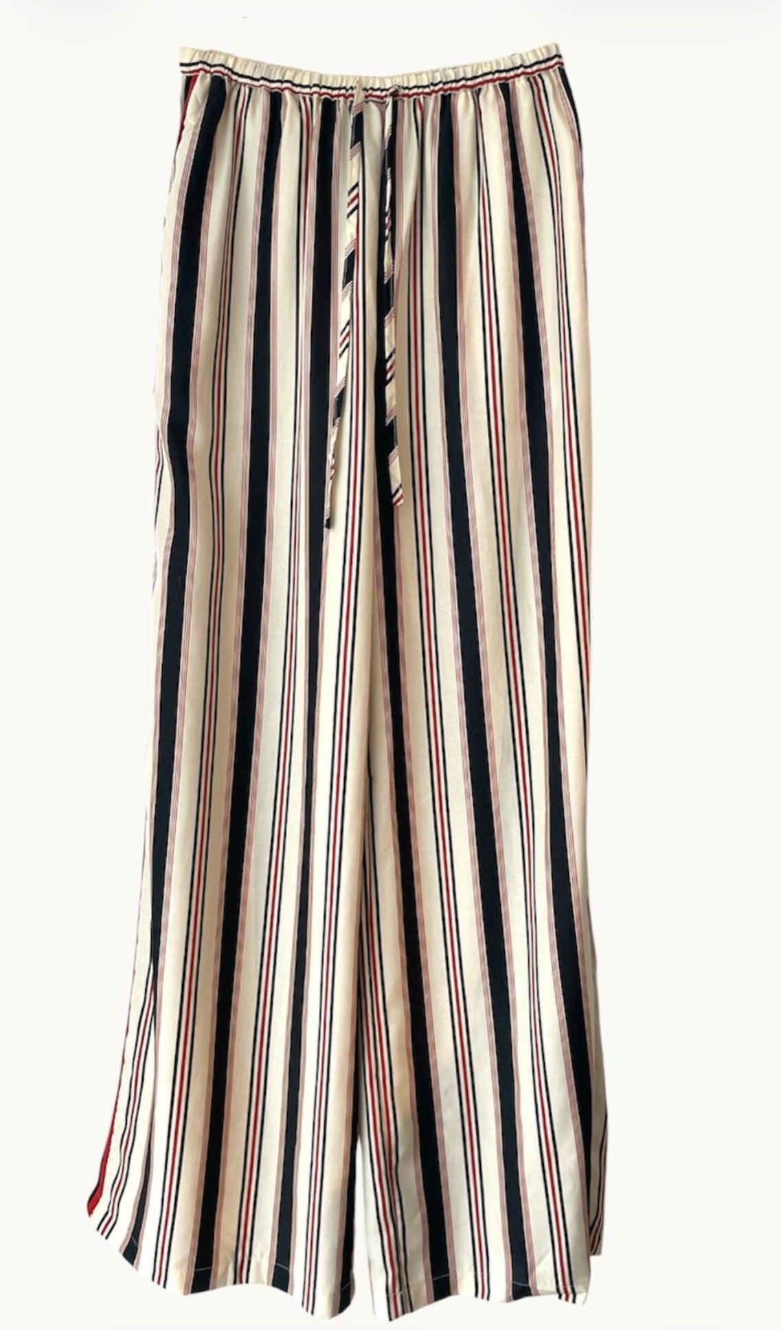 Featuring a statement stripe with red and black side trim, this wide-leg silhouette delivers a modern, on-trend look while remaining timeless and wearable. Finished with an elastic drawstring waistband and convenient side pockets, the Miami Pants are as practical as they are stylish.