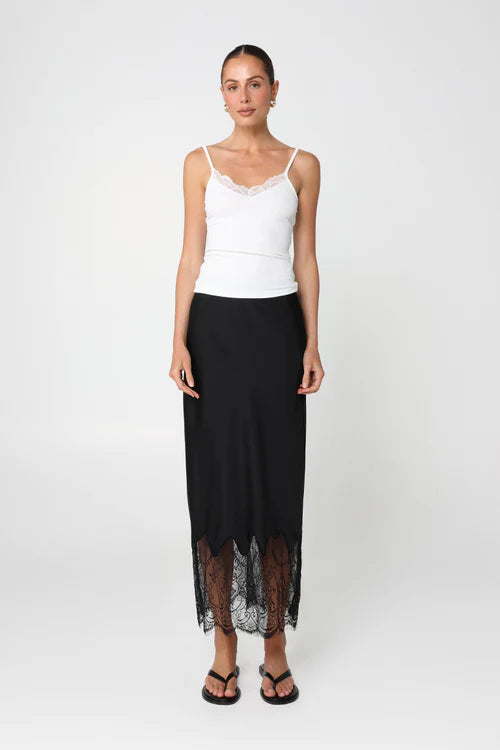 A timeless wardrobe essential with a feminine twist. The Maeve Top in White is crafted from a soft rib knit with delicate lace trimming along the front neckline. Designed with a flattering soft V-neck and thin adjustable straps, this everyday staple is perfect for layering or styling on its own. Easy to dress up or down, it’s the piece you’ll reach for season after season.