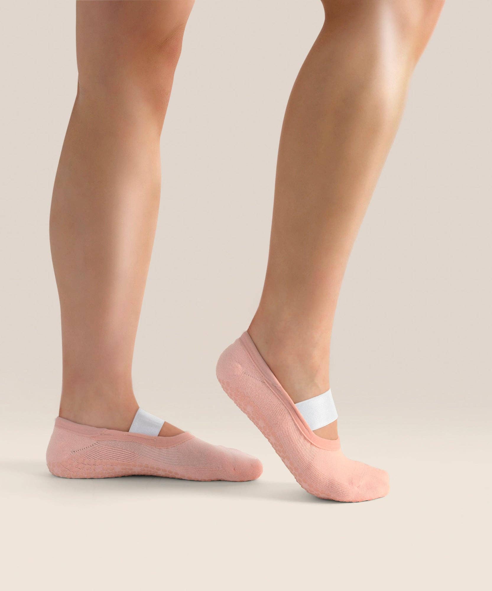 Built-in arch compression provides enhanced support and stability, helping reduce foot fatigue during longer sessions. The moisture-wicking, anti-bacterial fabric keeps feet dry, fresh, and hygienic, even through high-intensity workouts. Finished in elegant ballet-inspired tones, these socks blend performance with timeless studio style.