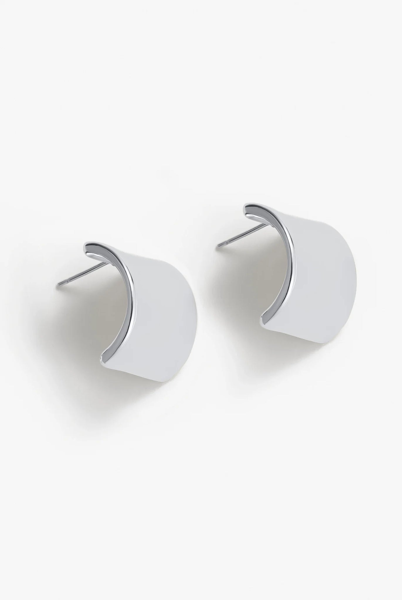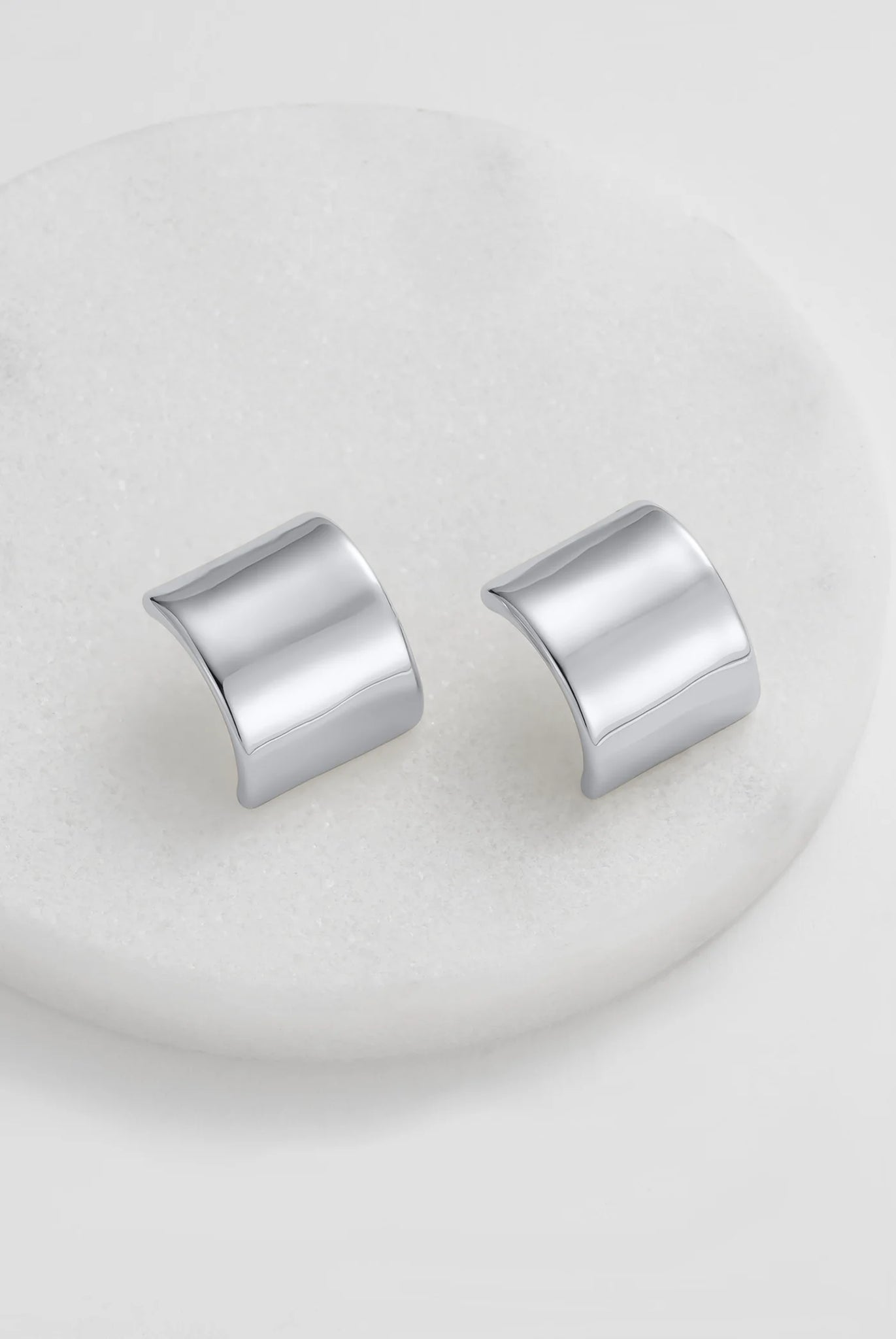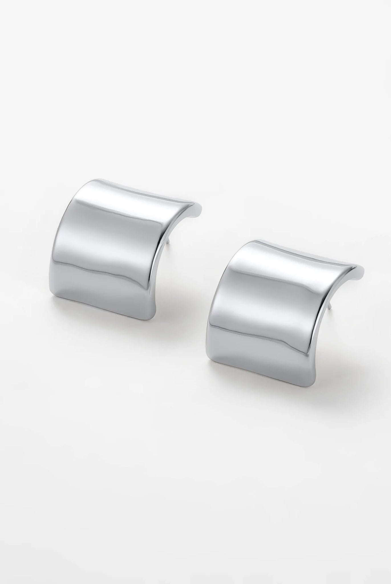 The Aria Earrings are a bold reimagining of the classic stud, designed with a wide, sculptural silver silhouette. Minimal yet striking, these statement studs add effortless polish to any look, from everyday wear to evening styling.